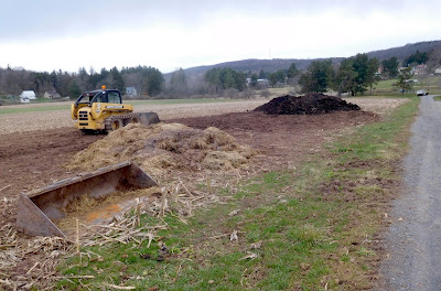 has started spreading the manure around in the field.